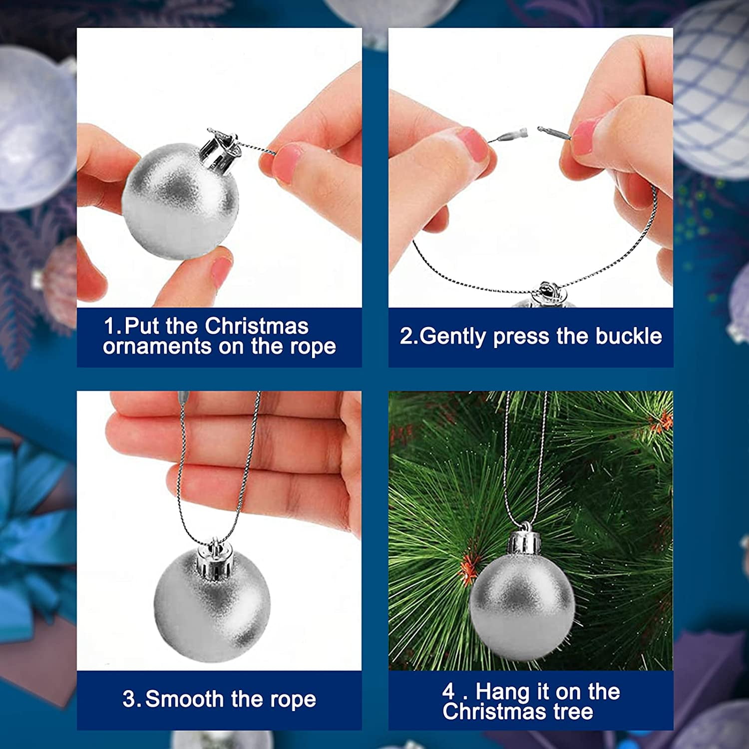 Christmas Ornaments Hanger String 200Pcs Silver Ribbon Ornament Hook Ropes Precut String with Snaps Locking for Xmas Ornament Hanging Decorations - Walmart.com how to tie ornament string
