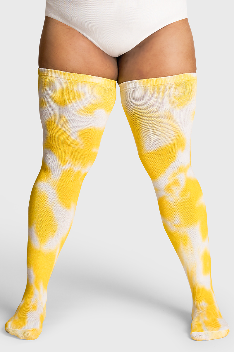 Yellow Tie Dye Thigh High Socks | Thunda Thighs | Artisan tie dye high socks
