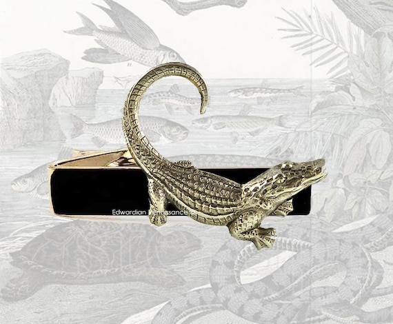 Crocodile Tie Clip: Hand Painted Enamel Art Deco Reptile Neckwear - Etsy alligator tie clip
