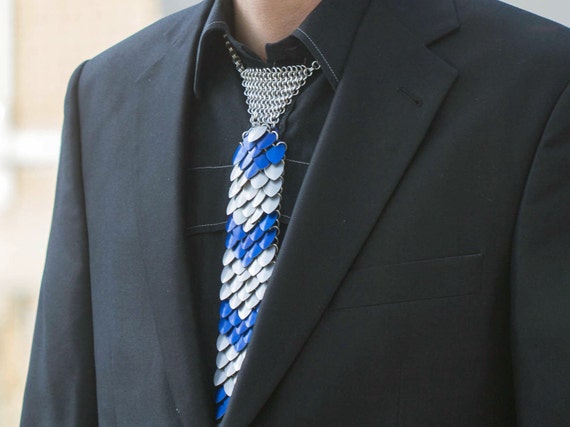 Dragon Scale Chainmaille Tie: Anodized Aluminum, Blue \u0026 Silver Arrows - Etsy dragon scale tie
