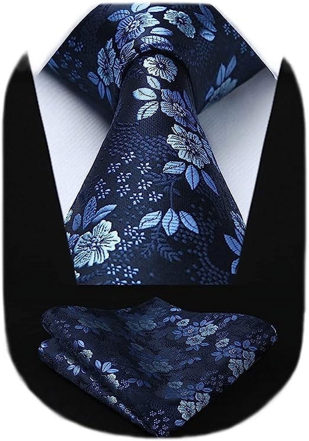 Wedding Tie Set HISDERN Men's Floral Tie Set With Pocket Square | Dusty Blue Woven Necktie \u0026 Handkerchief Gift Box Woven Necktie Set mens floral necktie
