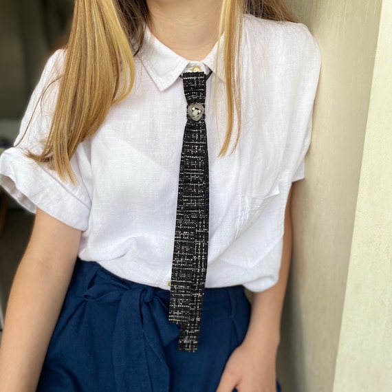 Handmade Tweed Skinny Tie: Black Bow Brooch, Women's Accessories - Etsy women's skinny tie