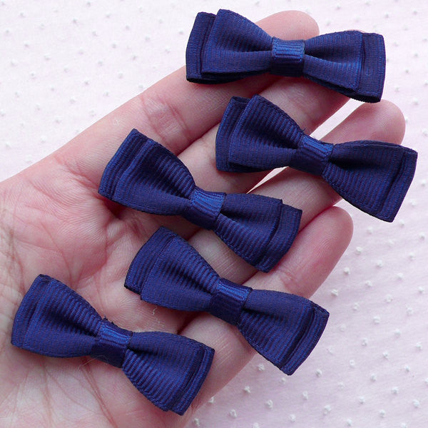 CLEARANCE Navy Blue Bow Ties / Fabric Bowties Applique / Double Grosgr | MiniatureSweet | Kawaii Resin Crafts | Decoden Cabochons Supplies | Jewelry Making fabric bow ties