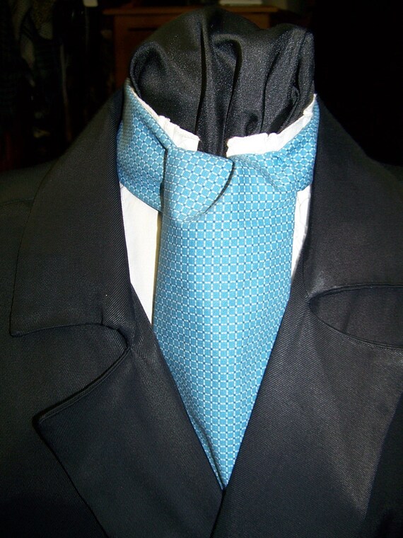 SALE Ascot or Carvat Medium Blue and White Small Square Pattern Cotton Print Fabric 4\ ascot tie for sale