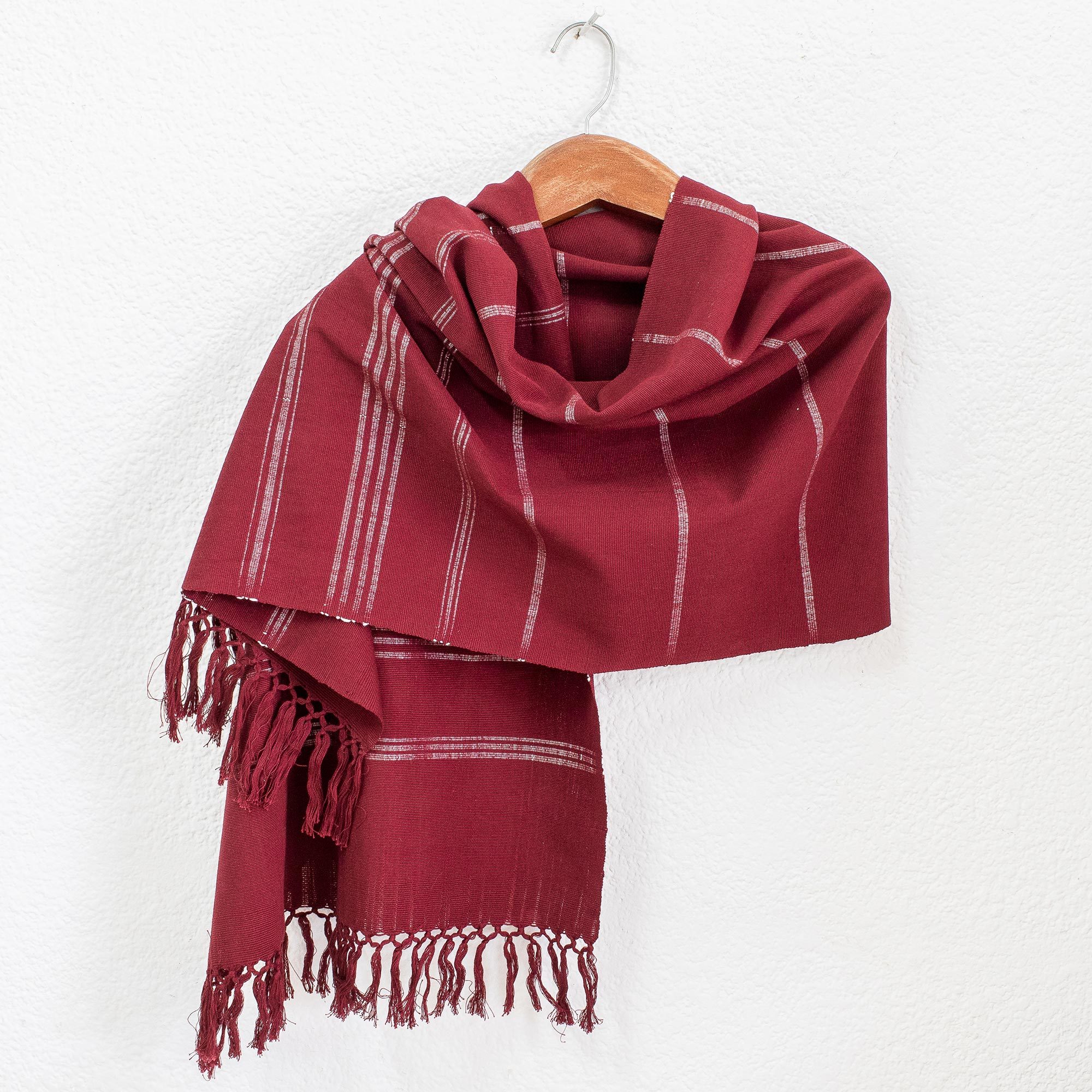 Cotton Handloom Woven Cherry Red Shawl from Guatemala - Cherry Red Wrap | NOVICA red cotton shawl