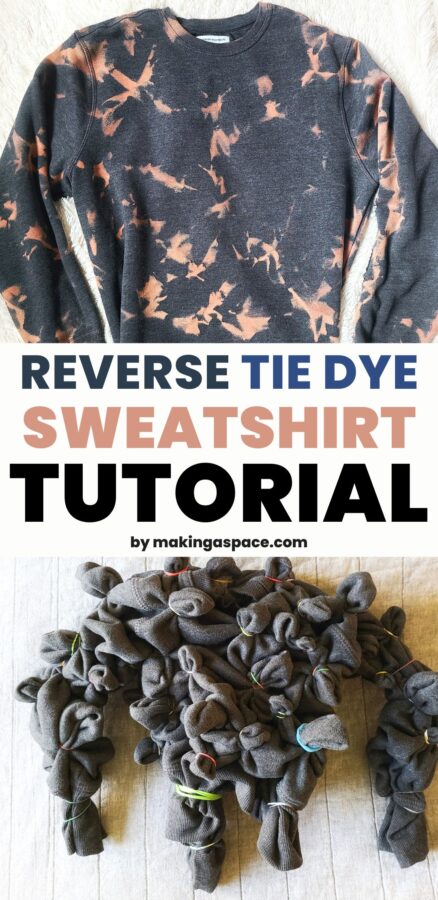 Reverse Tie Dye With Bleach Sweatshirt Tutorial - Making A Space bleach tie dye sweatshirt