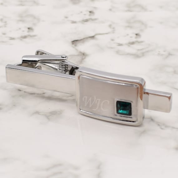 Beautifully Engraved With Initials | Hand Set Swarovski Crystals | Brushed Rhodium Plated Birthstone Tie Clip - Etsy UK tie clip swarovski