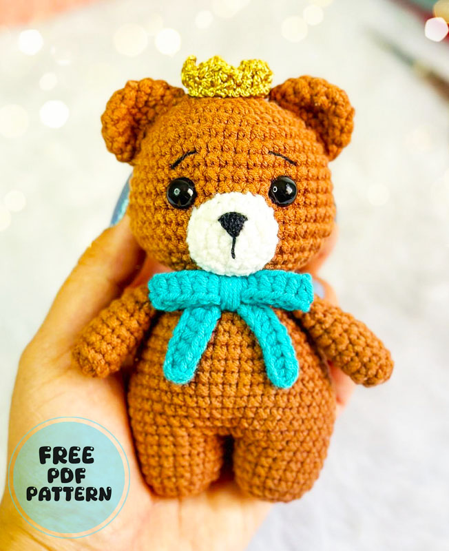 Teddy Bear with Crown Amigurumi PDF Free Pattern crochet tie for teddy bear