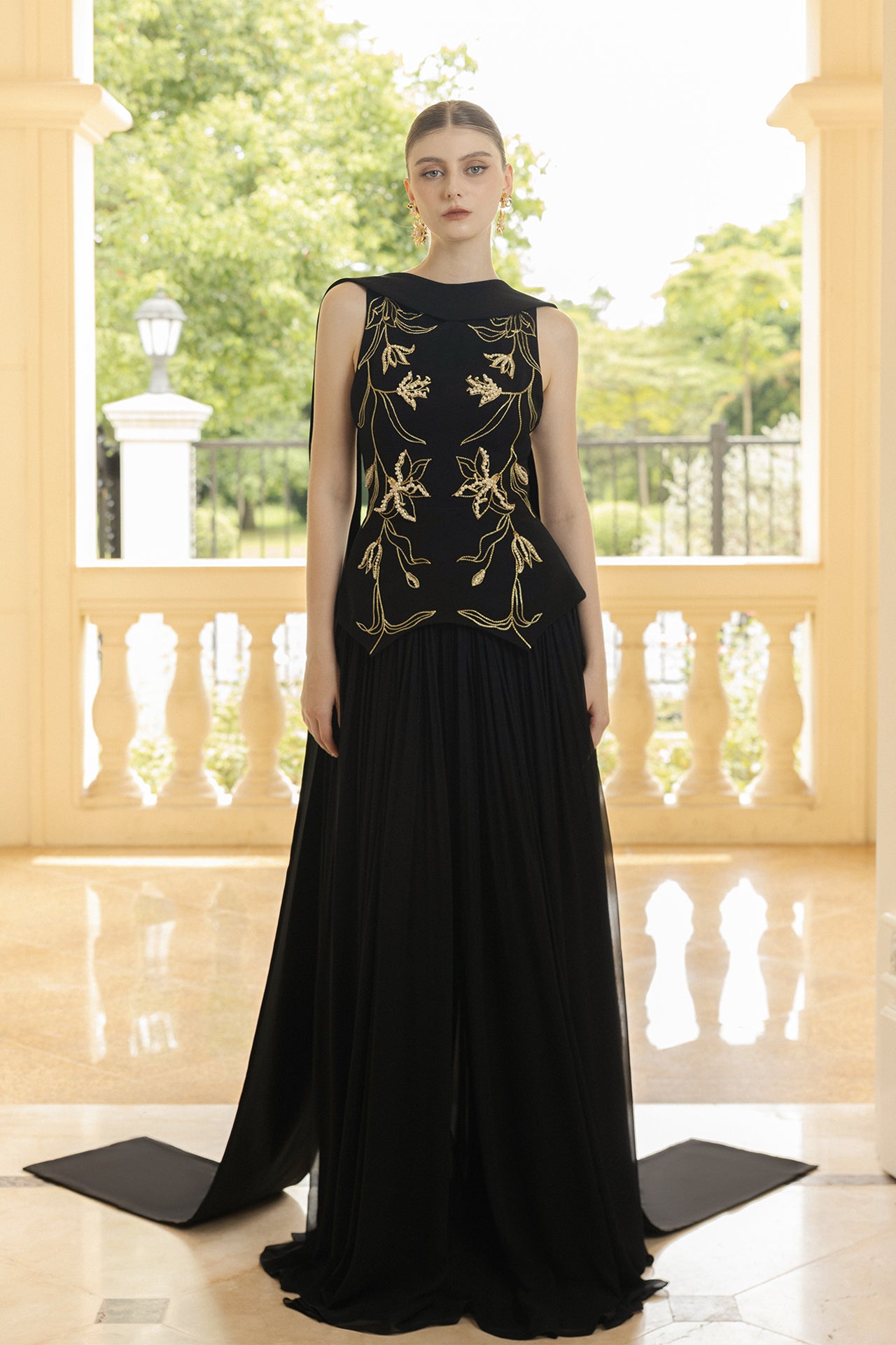 Black Slit Shawl Long Chiffon Plus Size Evening Dress ABU4002 | Abiyefon.com black chiffon evening shawl