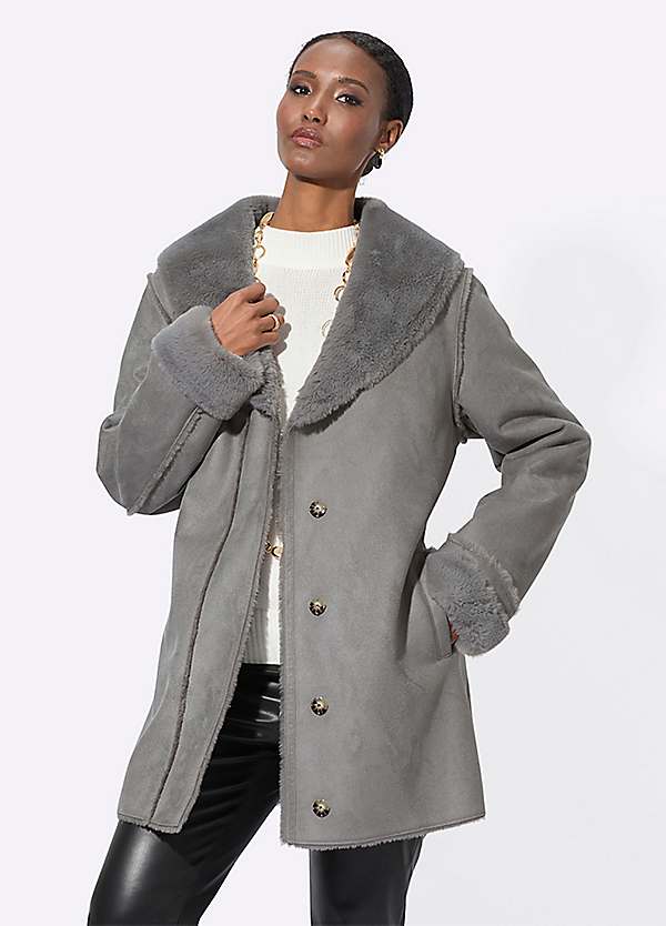 Buy Sosandar Brown Longline Faux Fur Shawl Collar Coat from Next Egypt faux leather shawl