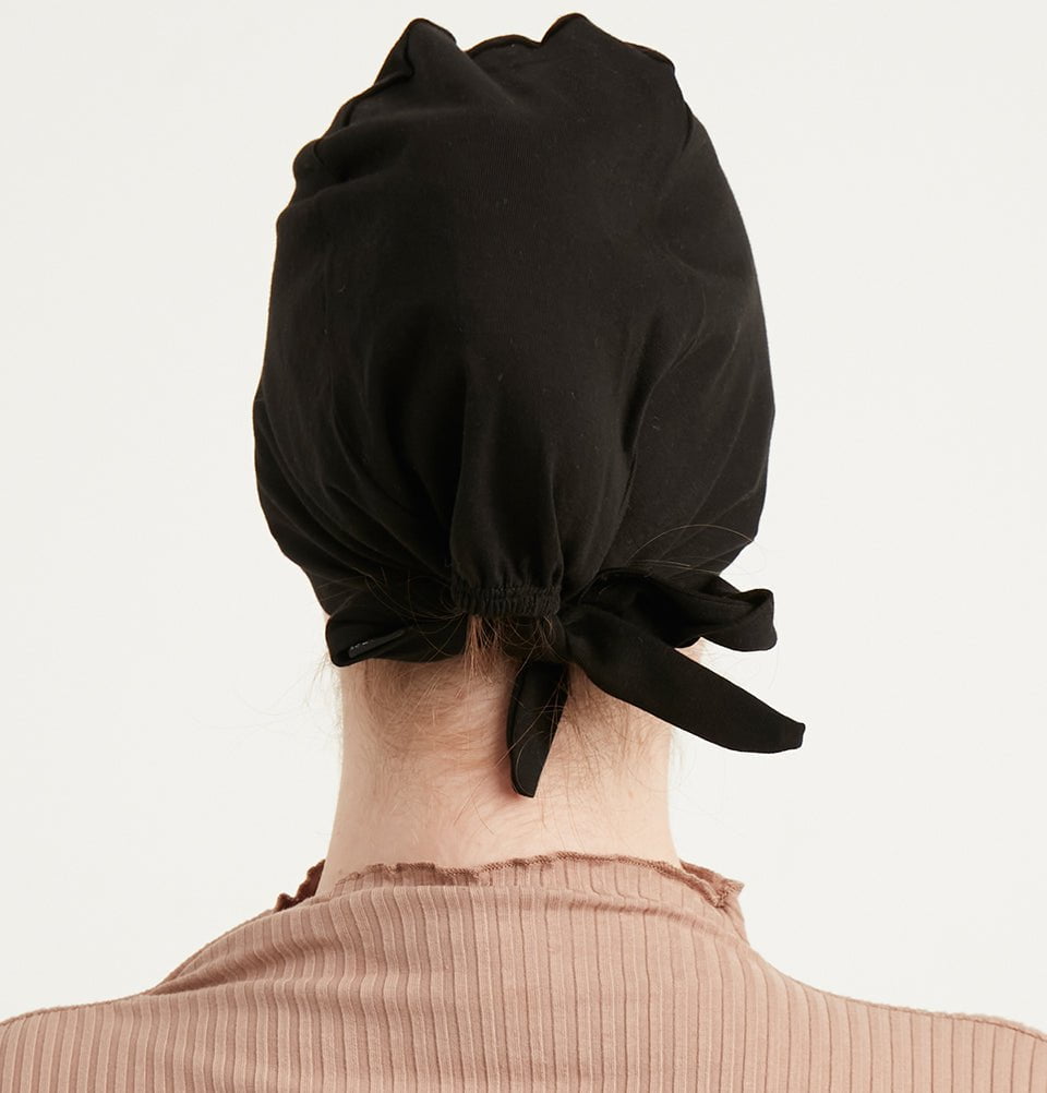 Premium Cotton Tie Back Underscarf - Black tie back bonnet cap
