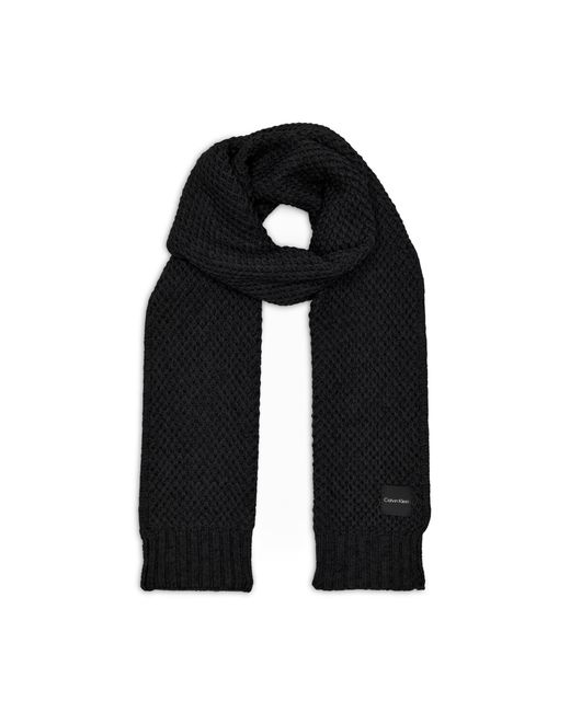 Calvin Klein Women's Black Chunky Waffle Knit Cozy Scarf With Ck Logo Patch calvin klein black shawl