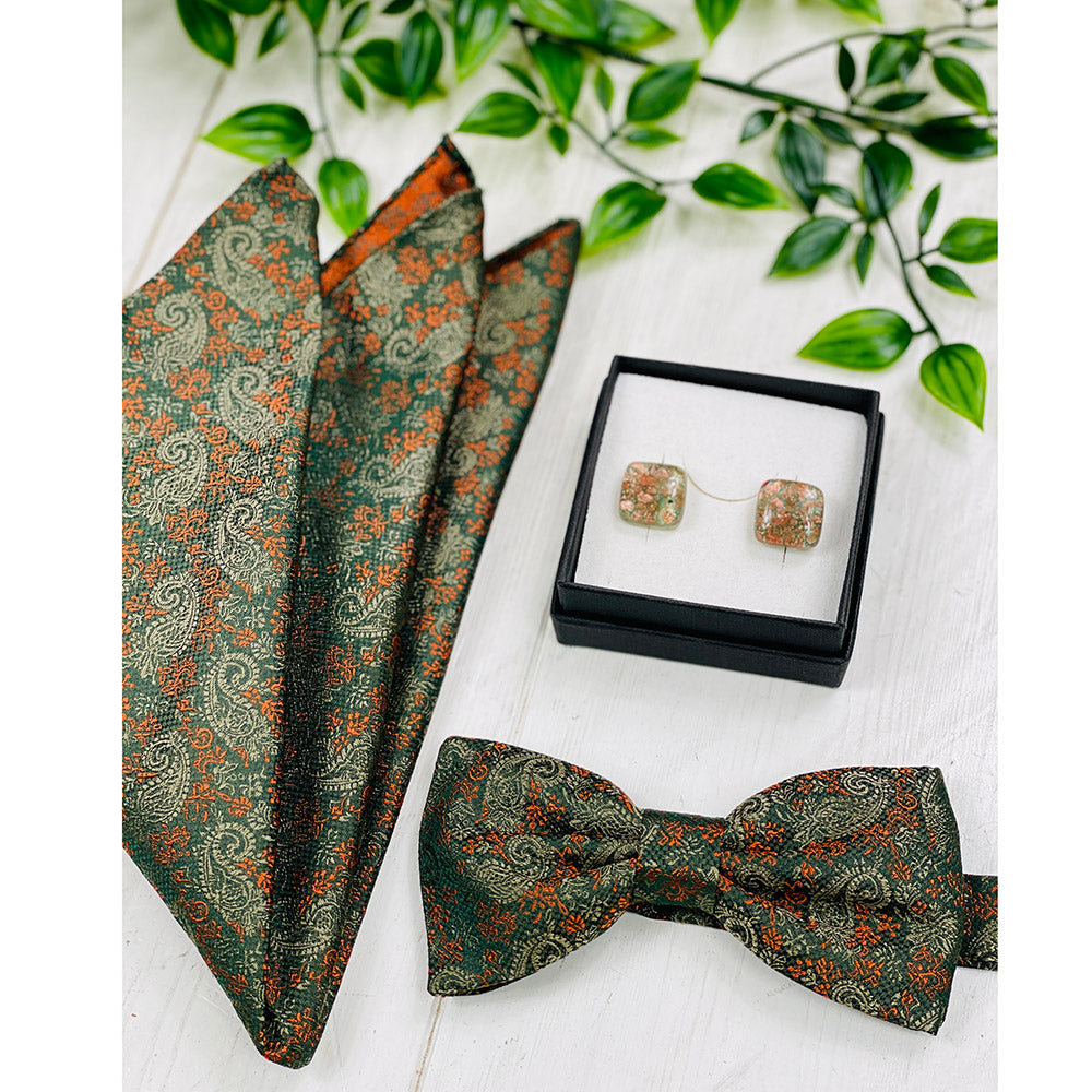 Olive Green/Orange Patterned Bow Tie⎪ High-Quality Bow Ties for Celebrations green and orange bow tie