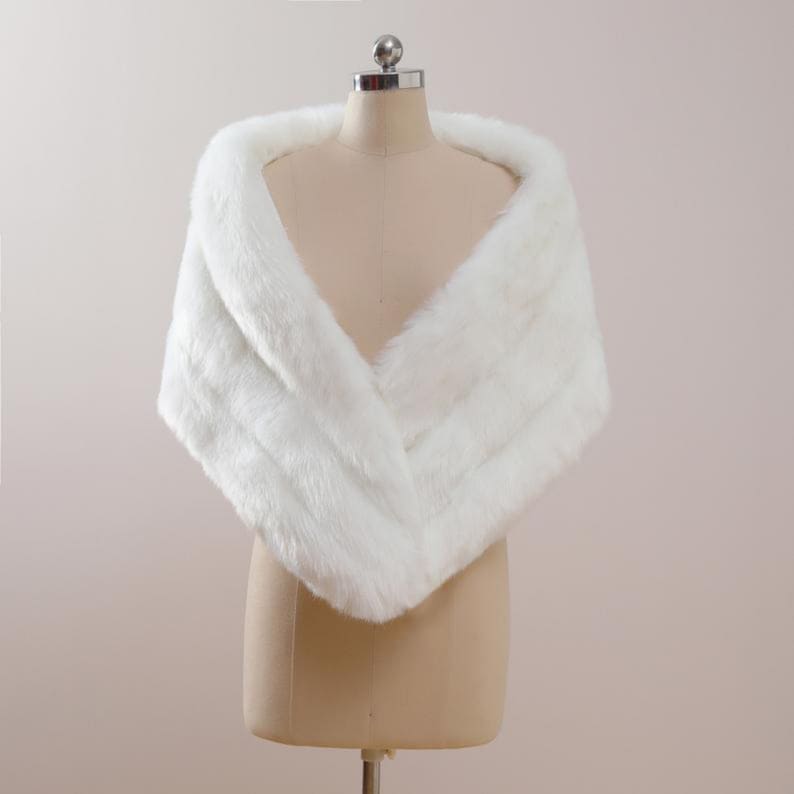 Fur Shawl IVORY Faux Mink Fur Shrug Wrap - Bridal Shawl, Stole, Cape For Wedding Or Evening Wear Ivory Bridal Wraps \u0026 Shawls faux mink shawl
