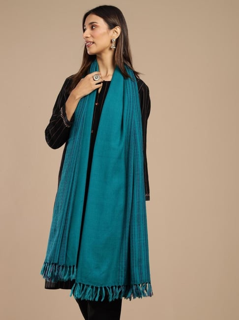 Fabindia Teal Regular Fit Woven Design Shawl fab india shawl