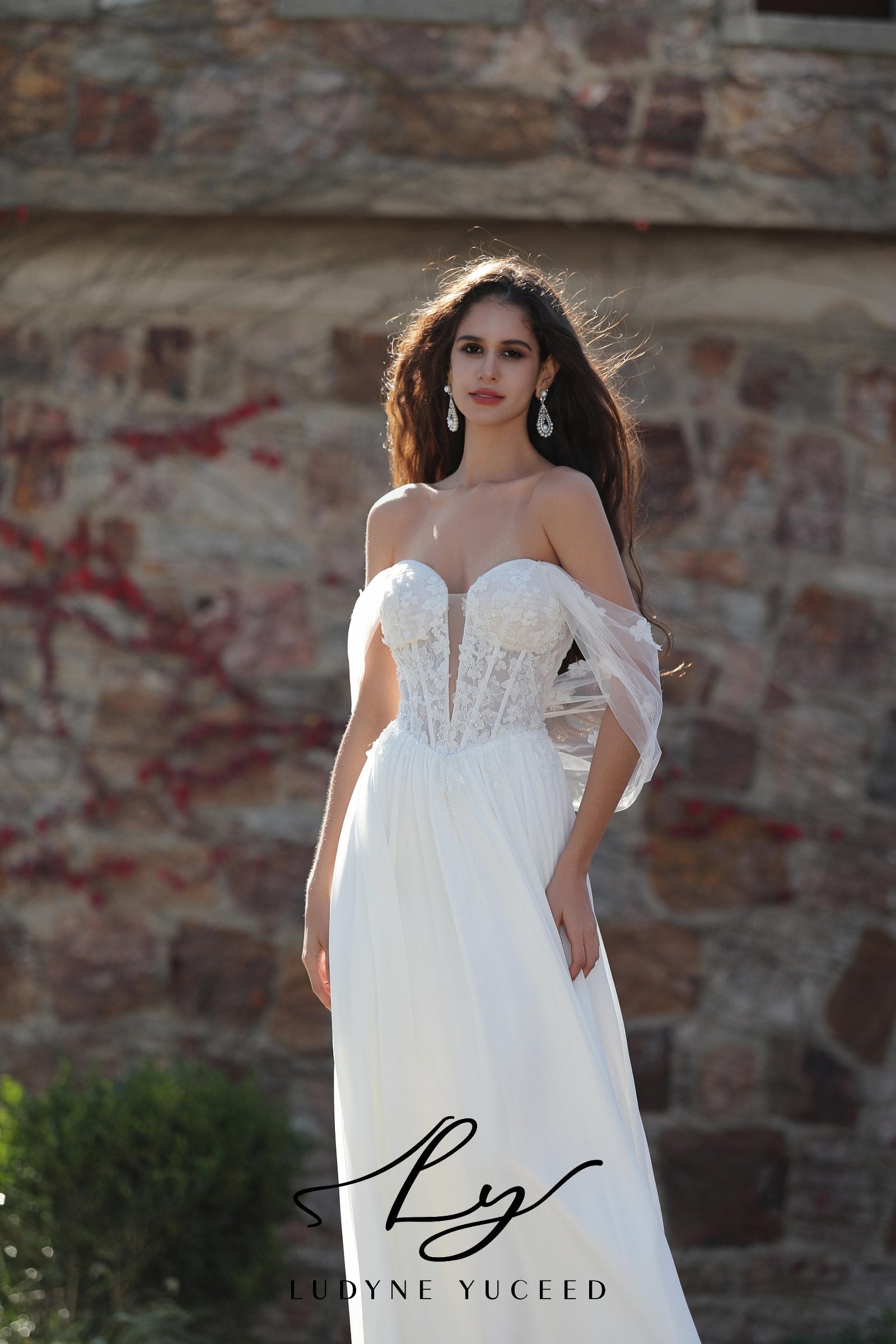 Elegant Chiffon Wedding Gown And Detachable Shawl – Ludyne Yuceed wedding gown with shawl