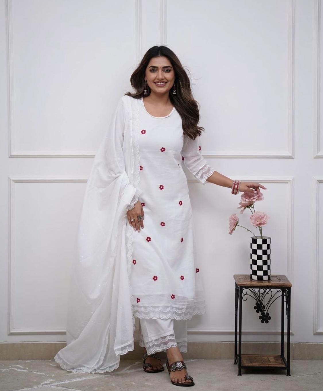 Buy PATBRO Women's Lace Dupatta Shawl with Black Embroidered Salwar Suit, White (IN, Alpha, S, Regular, Black) at Amazon.in white churidar matching shawl