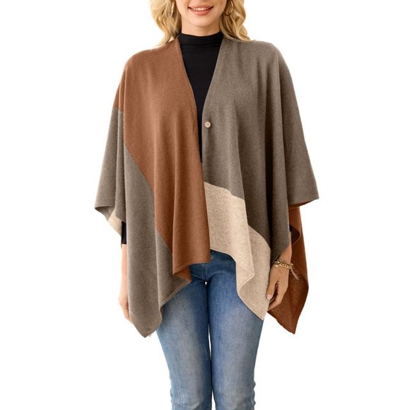 Women's Cashmere Blend Shawl Wrap Color Block Poncho Versatile Travel Scarf💝 women shawl wrap