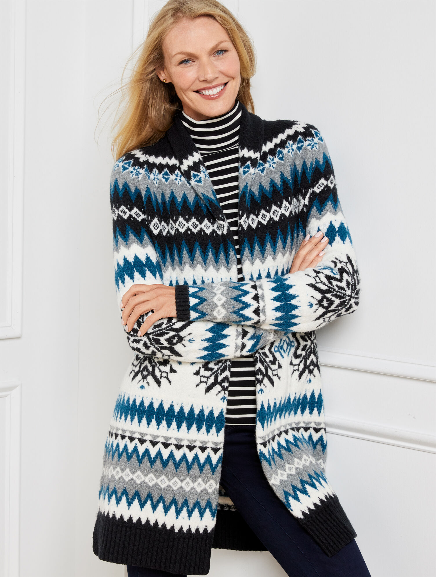 Shawl Collar Open Front Cardigan - Snowflake | Talbots talbots shawl collar cardigan