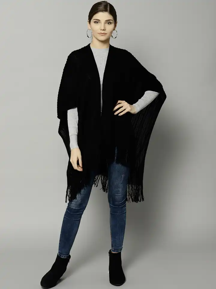 Buy Marks \u0026 Spencer Women Black Self Striped Cape Shawl - Shawl for Women 7669243 | Myntra cape shawl marks and spencer
