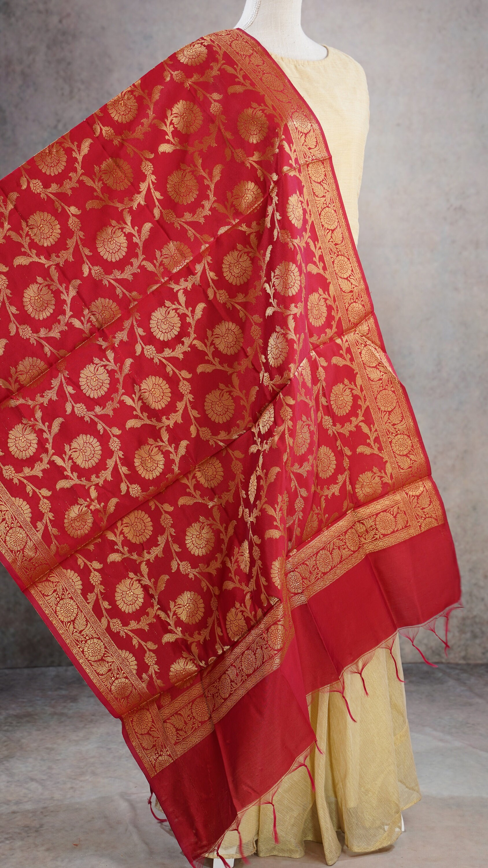 Silk Cotton Benaras Dupatta in Colors Festive Gold Zari Scarf Indian Ethnic Shawl, Gold Zari Dhupatta, Neck Scarf, Neck Shawl, Gift for Her - Etsy red banarasi shawl