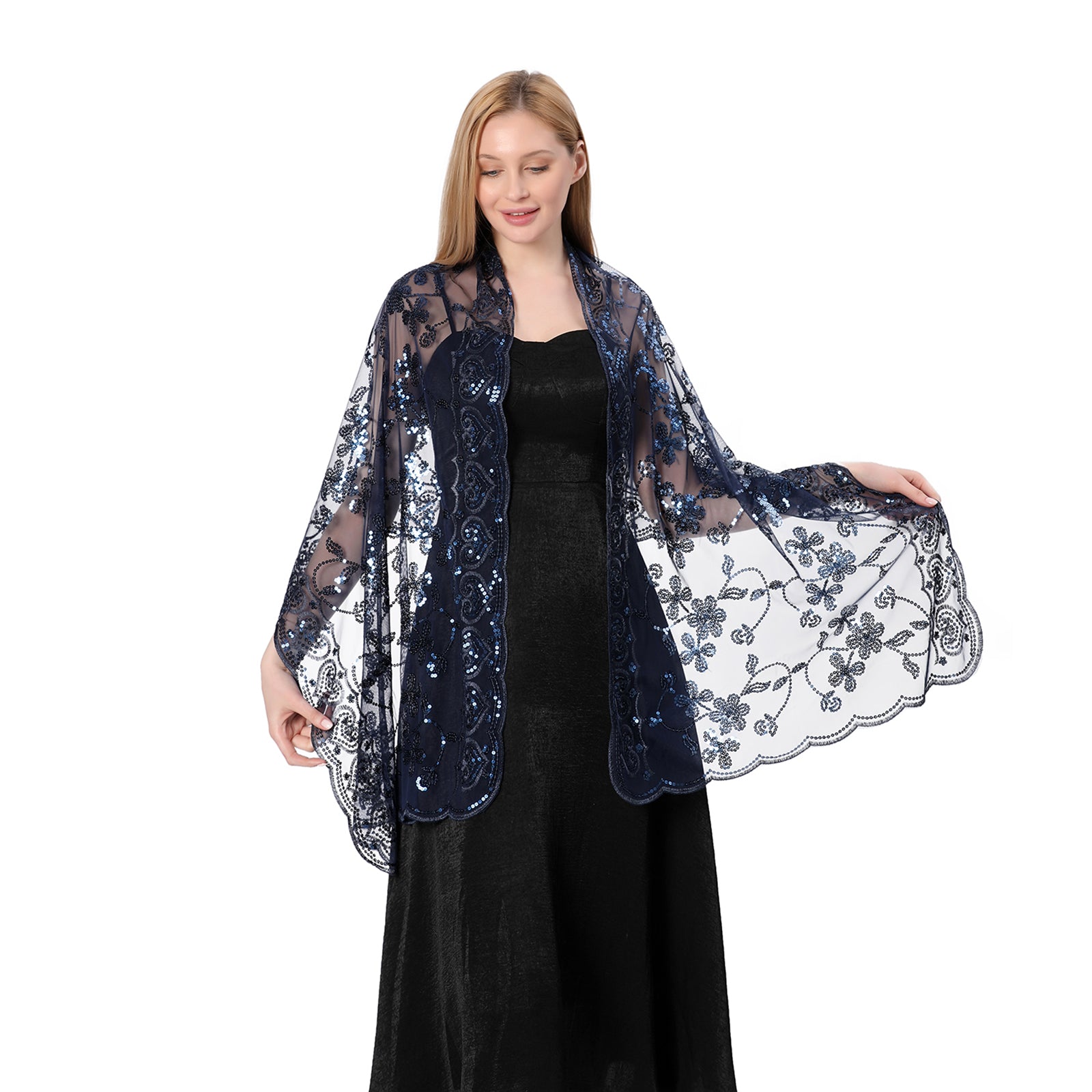 NAVY BLUE SEQUINS ON NAVY NET FABRIC, WRAP SCARF WEDDING PARTY PROM SHAWL STOLE | eBay UK blue sequin shawl