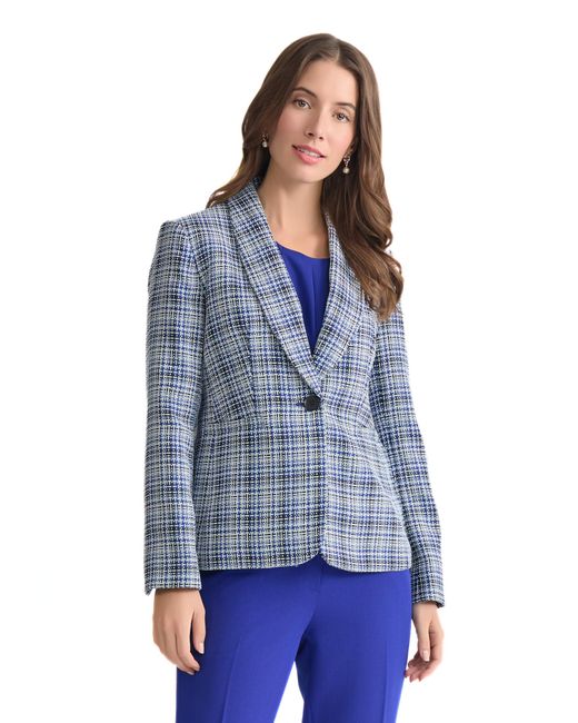Kasper Women's Blue Petite Shawl Collar Tweed One-button Blazer women shawl collar