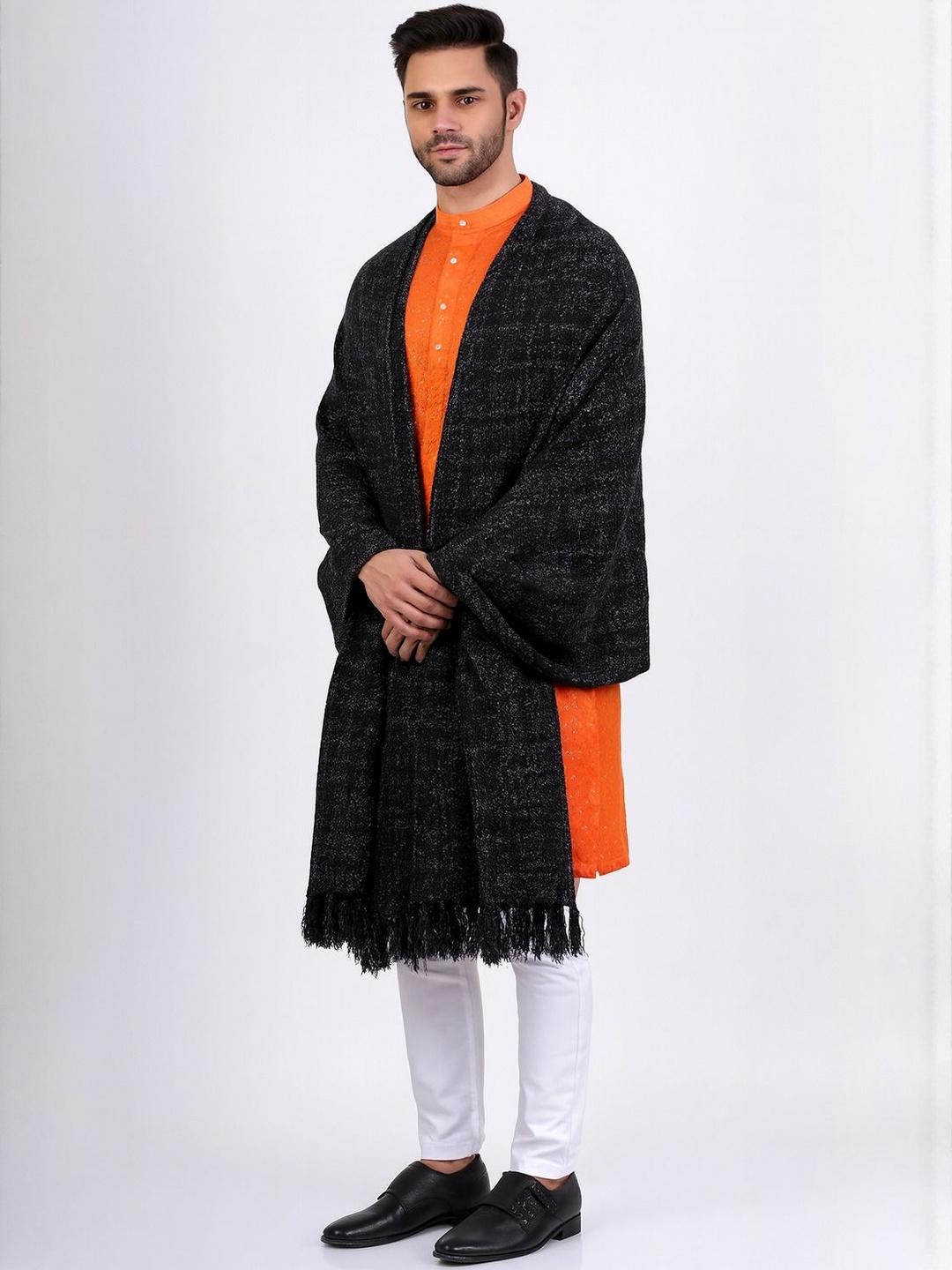 Buy Vrinde Men Black Solid Khadi Pure Woolen Shawl - Shawl for Men 37203196 | Myntra khadi shawl for men