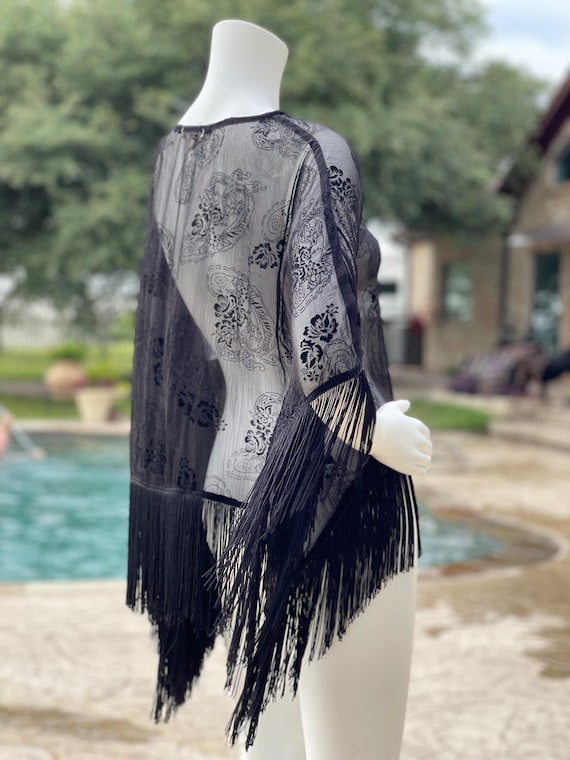 Sheer Black Fringe Capelet: Boho Goth Shawl, Stevie Nicks - Etsy black stevie nicks shawl