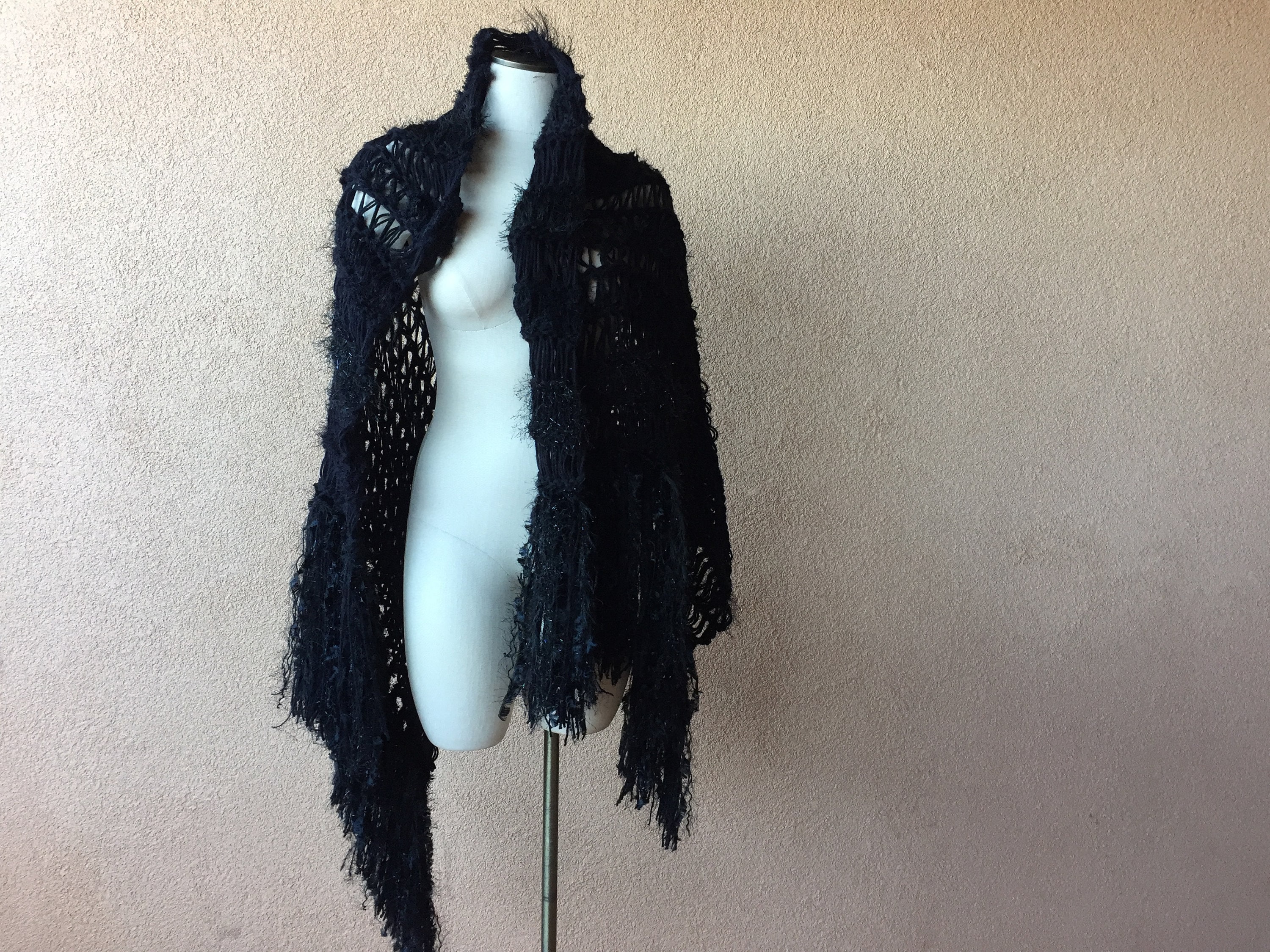 Stevie Nicks Inspired Fringed Knit Shawl - Black Yarn Wrap - Etsy black stevie nicks shawl