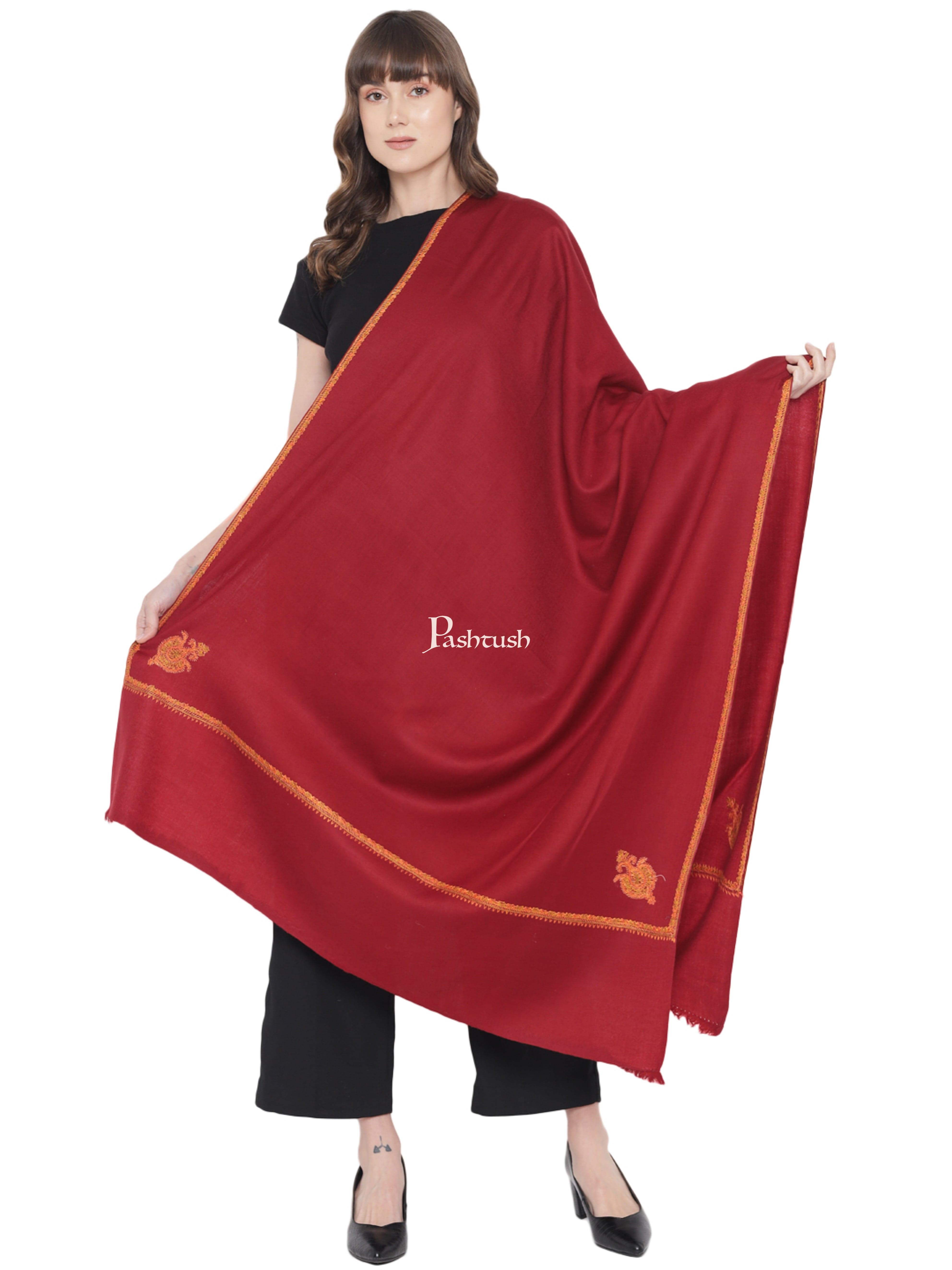 Hand Embroidered Sozni Pashmina Jaaldar Shawl Red | Kashmir Loom