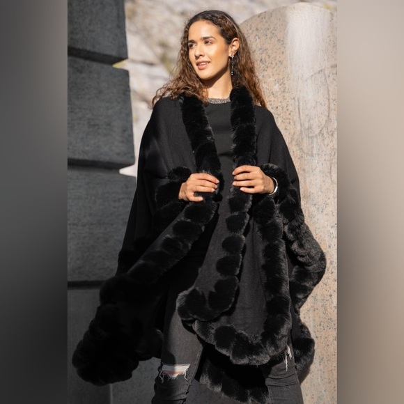 Womens Cape Unreal Fur Faux Fur Cape Black Women Faux Fur Neck Winter Poncho Overcoat Cape black fur cape shawl