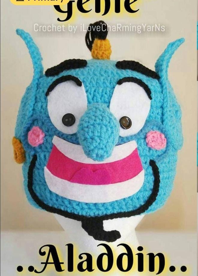 Genie, Genie Aladdin Hat, Genie Crochet Hat Costume, Disney Crochet Hat,baby to Adult Disney Genie Crochet Costume,disney Genie Hat,wig Hat - Etsy UK aladdin genie headpiece