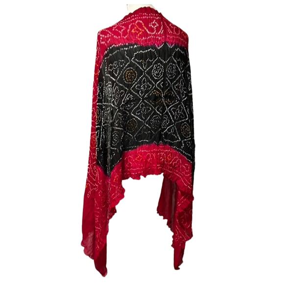 Vintage Y2K Sumac Design Silk Scarf Wrap – Crinkle Hand-Dyed Shawl, Red/ Black red black shawl
