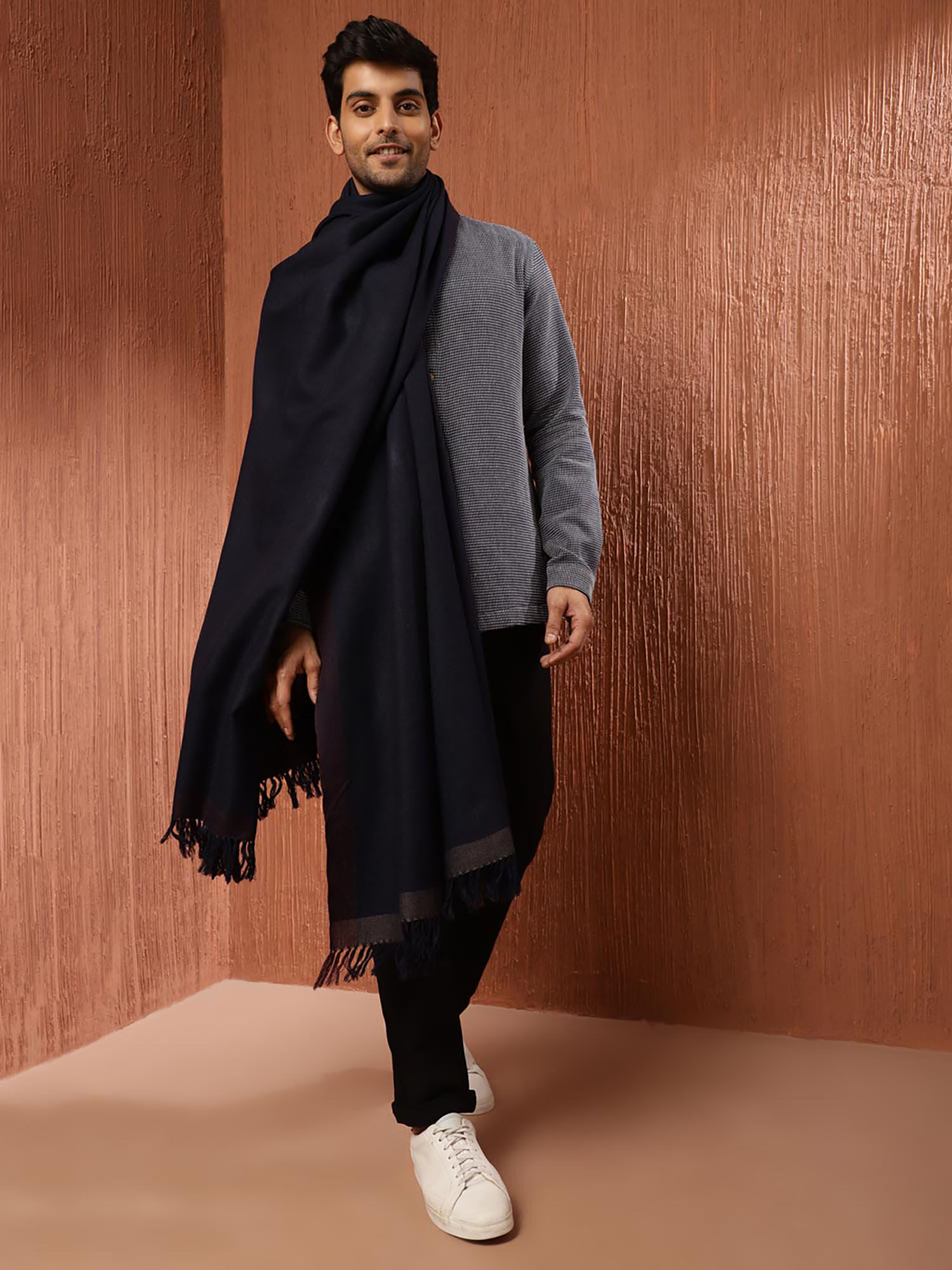 Buy Fabindia Navy Blue Pure Wool Woven Men's Shawl Online fabindia shawls online shopping