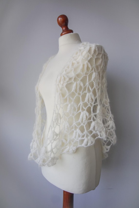 Back Street Vintage Crochet Open Front Knit Shawl Capelet Cardigan, Cream,L - www.theoakleygroves.com