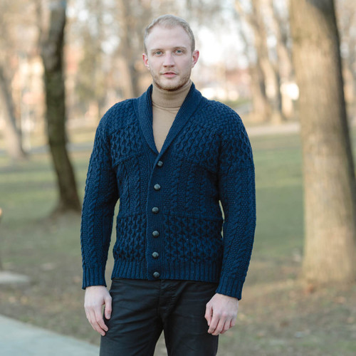 Mens Cable Shawl-Collar Cardigan | SAOL | SaolKnitwear.com mens shawl neck cardigan sweater