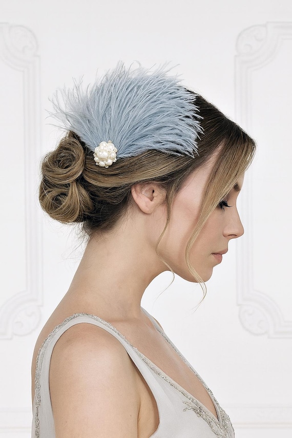 Bridal Headpiece 1920s Style With Ostrich Feathers, Ppearls and Crystals - Etsy Australia 1920's style bridal headpieces