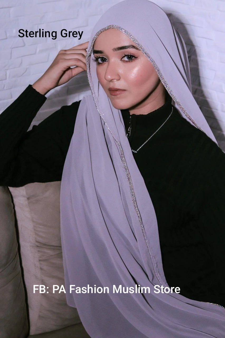 Rhinestone Edge Chiffon Hijab Elegant - PA Fashion Muslim Store | Modest Islamic Clothing for Women hijab pa