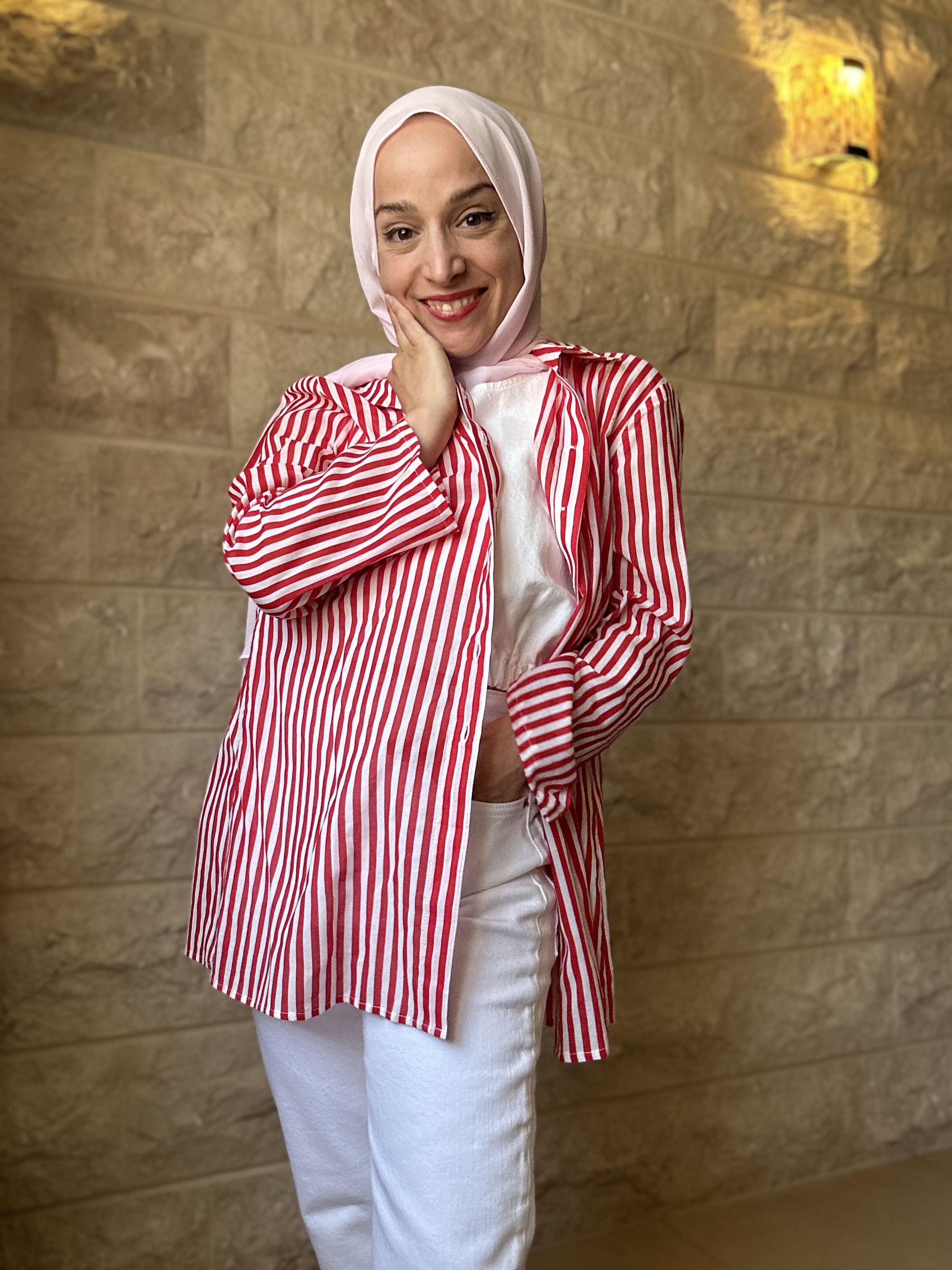 Long shirt with linen-effect pants set, hijabi outfit idea
