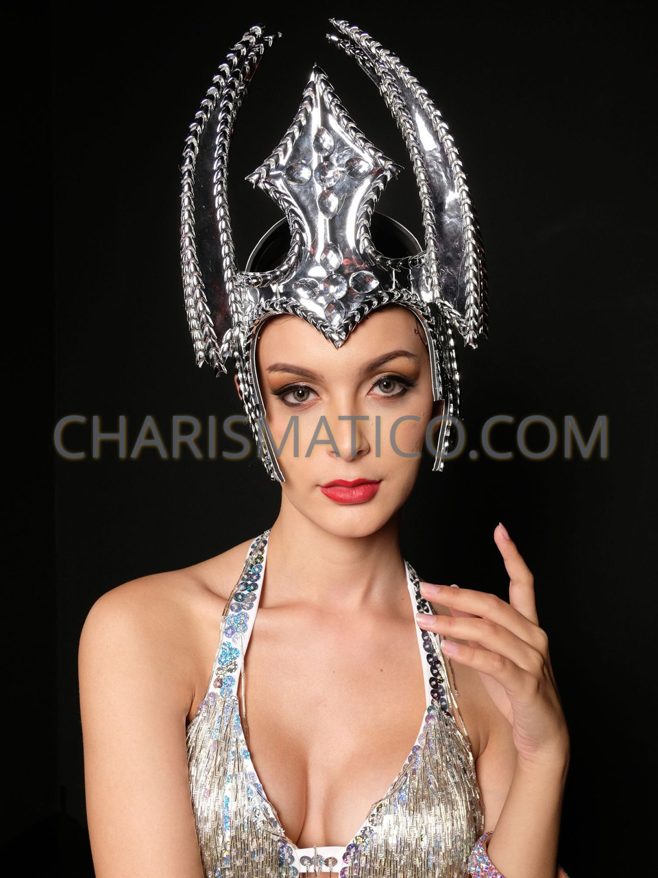Silver Gothic-Inspired Vinyl Warrior Headdress warrior princess headpiece