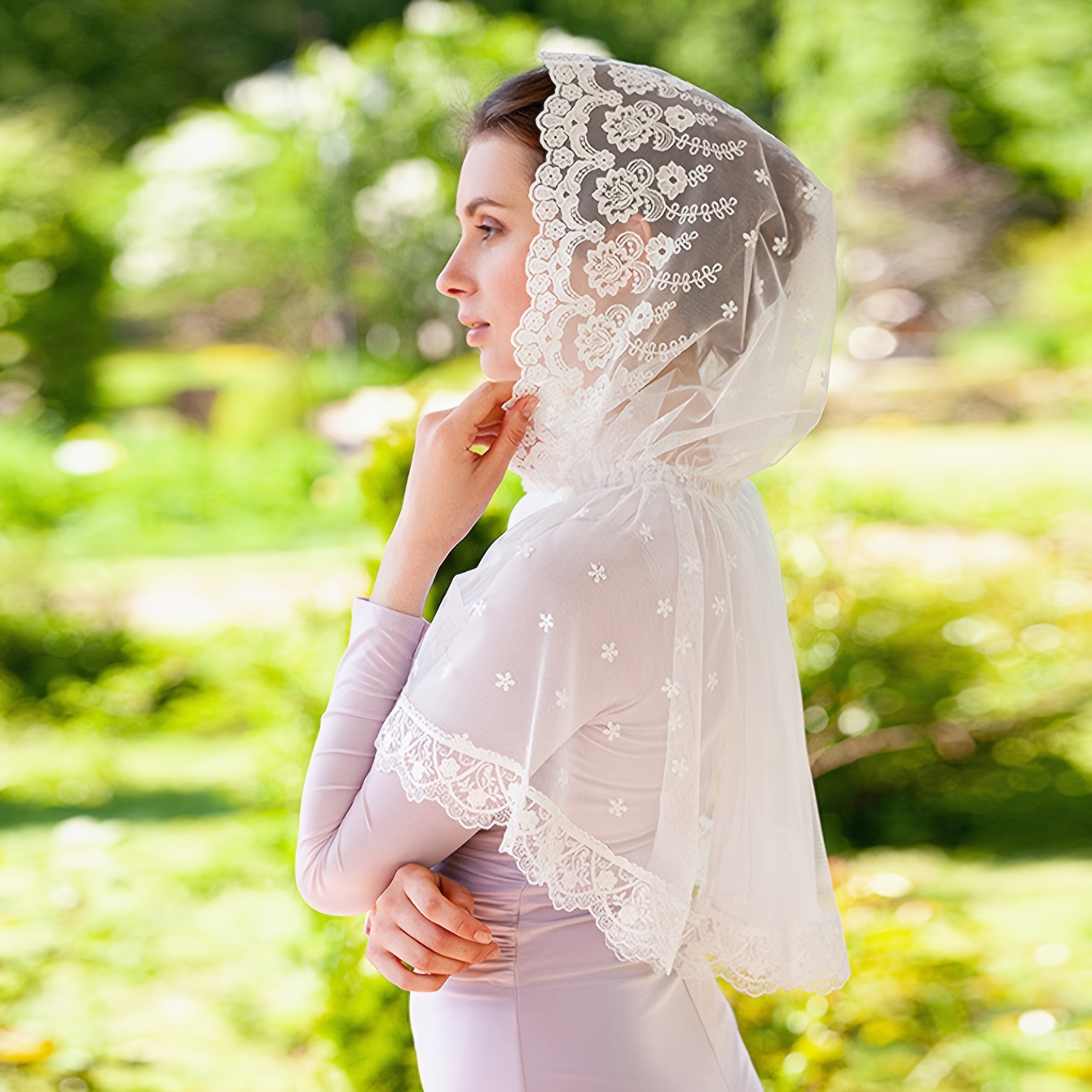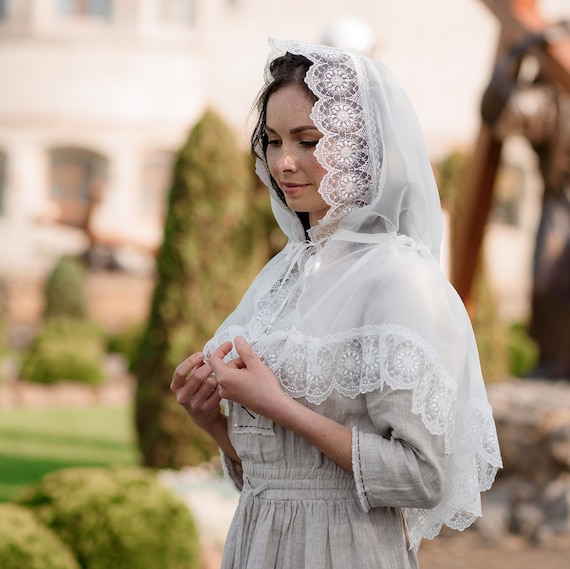 YLYSLFC White Muslim Headscarf Gossip Muslim Headscarf Bridal White Lace Veil Catholic Veils For Women Mass. at Amazon Women's Clothing store lace veil hijab