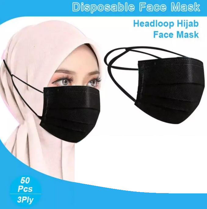 Msia Stock)Full Black Face Mask Headloop (HIJAB) 50pcs Hitam Mask Hijab With Box Non-Woven Fabric Earloop Mask Colorful Hijab Face Cover - Lazada | Lazada black mask with hijab