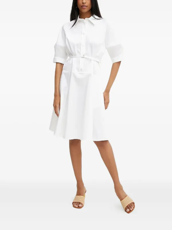 BOSS Belted Shirt Midi Dress | White | FARFETCH HK white belted dress