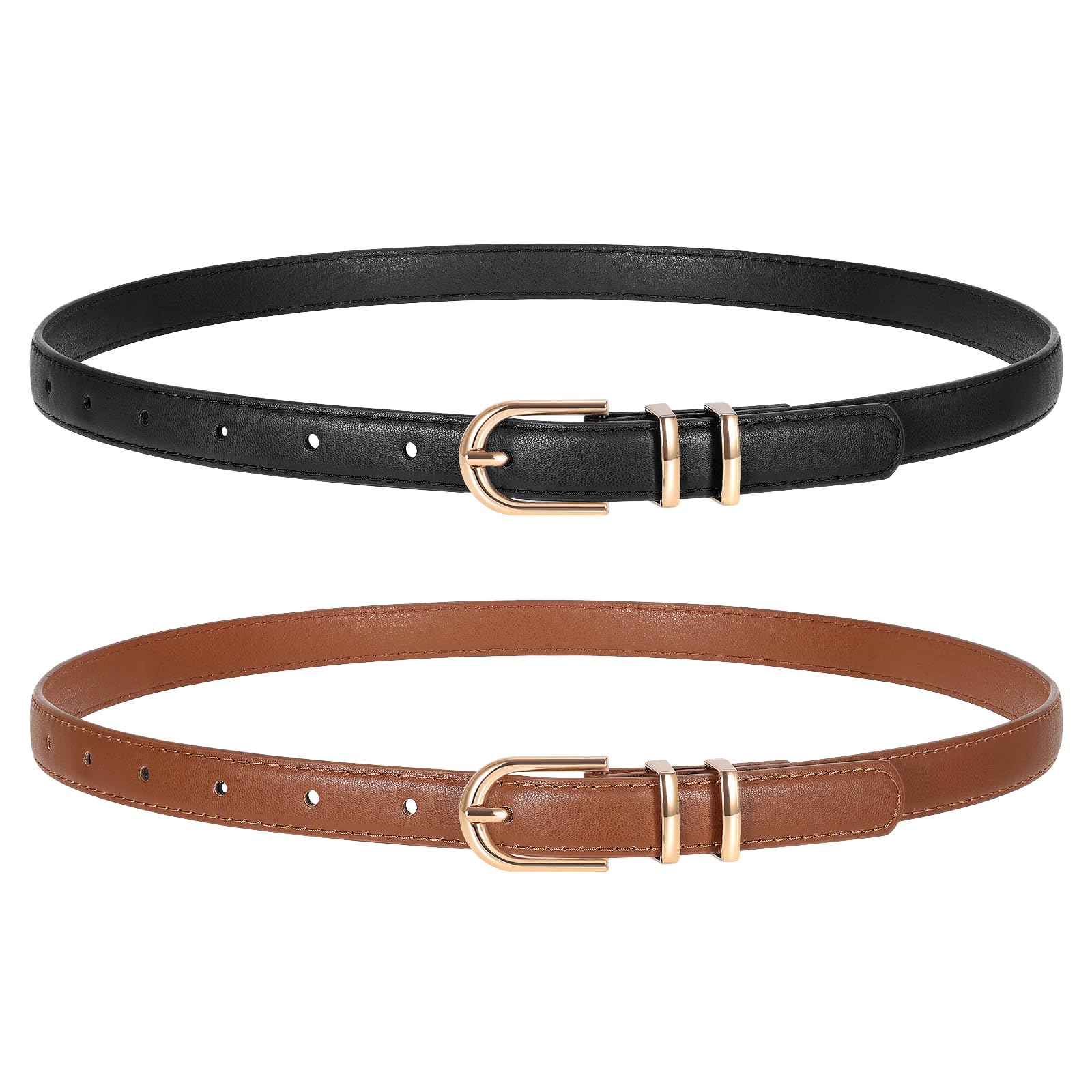 2 Pack Women Skinny Leather Belts for Jeans Pants Thin Faux Leather Belt with... | eBay skinny leather belt womens