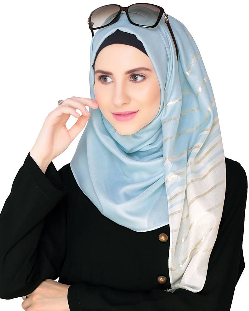 light blue Satin Modal Islamic Style Look Casual Hijab Arabian Naqab Stole Women Scarf - Modest Forever - 2523581 arabian look hijab