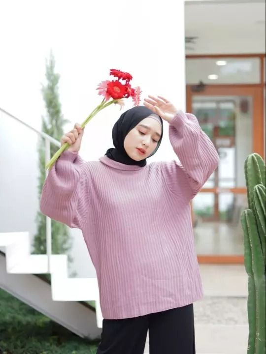 Turtle Neck Fashion Hijab Cardigan Pink Ootd Hijab Turtleneck Hijab Style Baju Turtleneck Style turtle neck hijab
