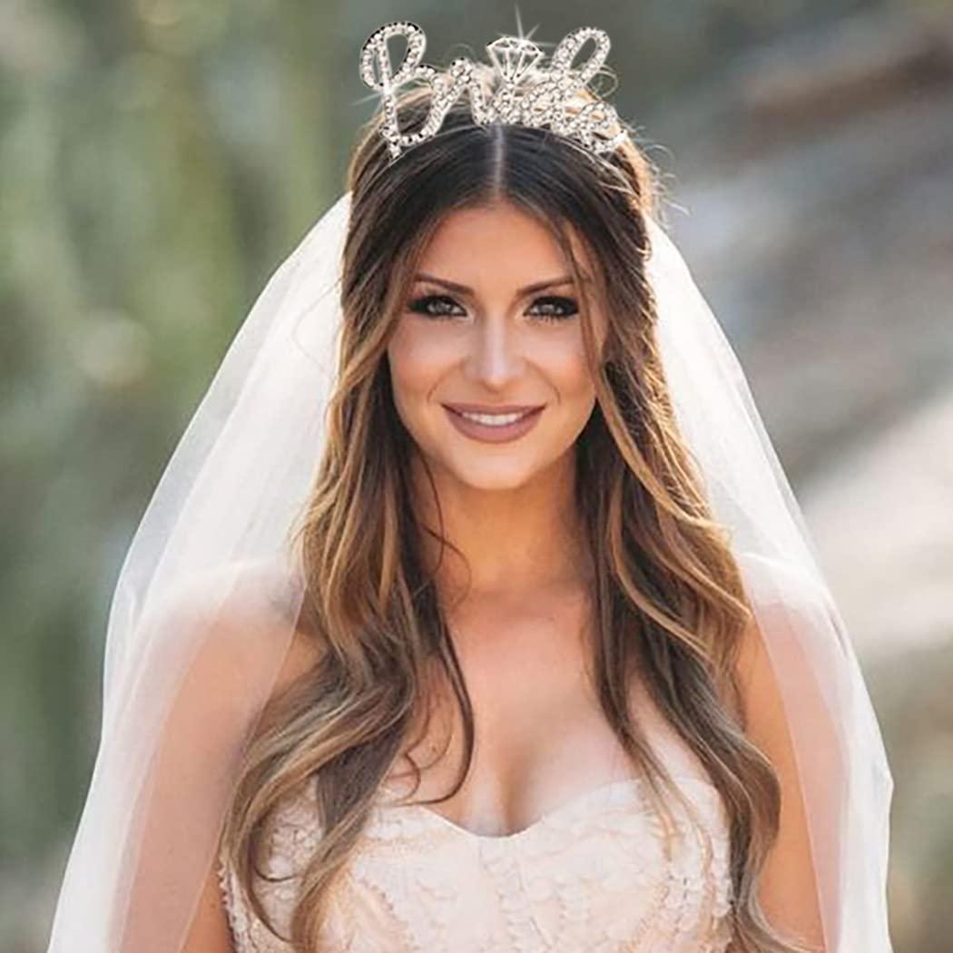 Bridal Shower Decorations Bridal Tiara And Veil Set - Wedding Crown With Comb For Bachelorette \u0026 Bridal Shower Sparkling Rhinestone Crown
