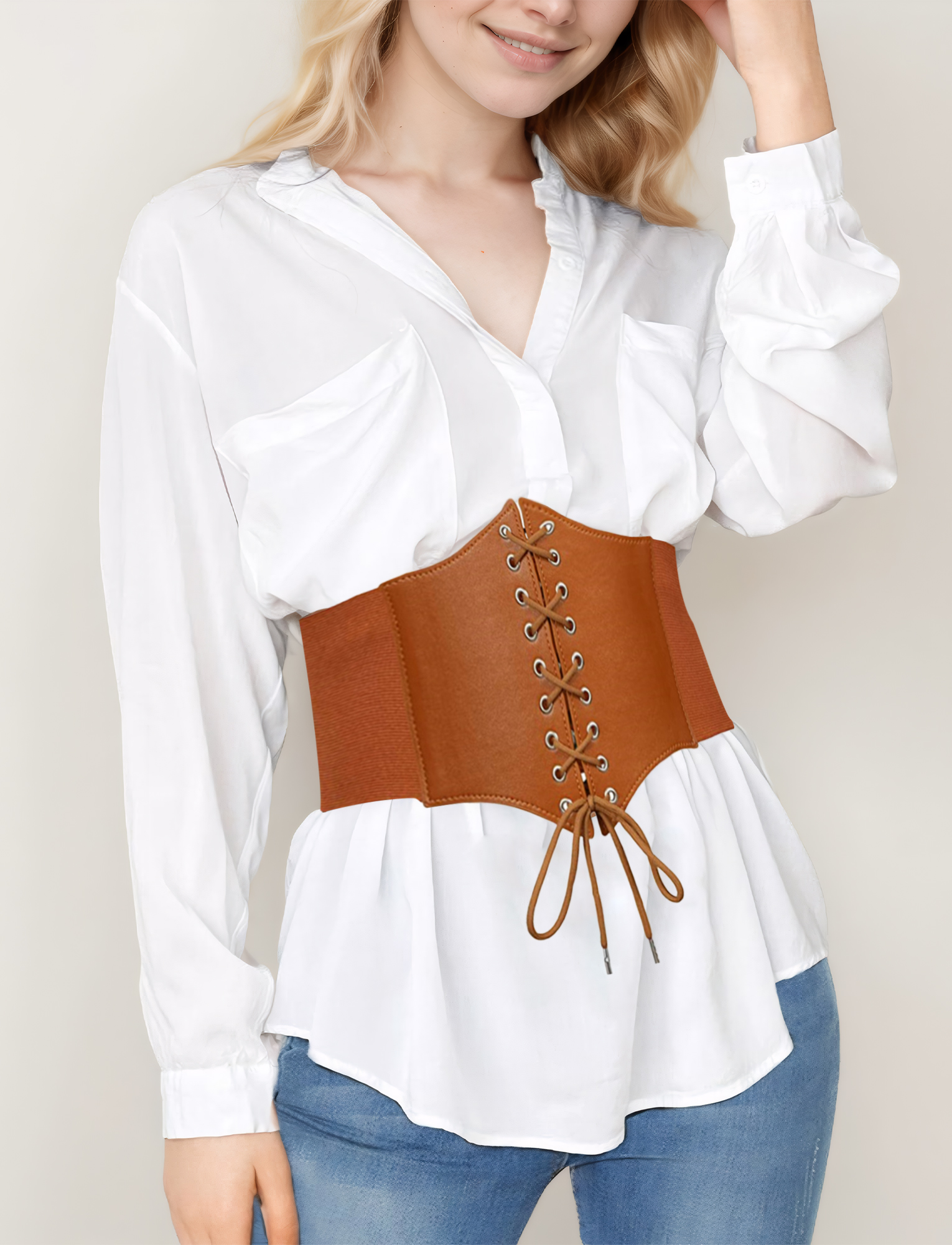 FEOYA Women Corset Belt Brown Vintage Elastic Wide Belt Lace Up Pirate Corset Belt Renaissance Corset Waistband Tied Waspie Belt Black PU Leathers Girdle for Dresses Daily Wear - Walmart.com pirate corset belt