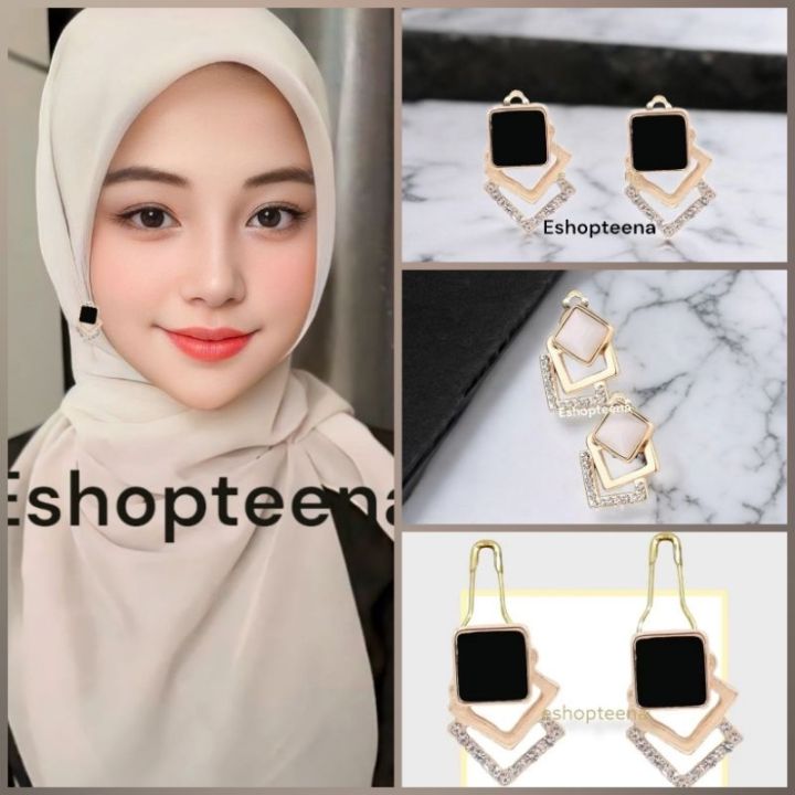 anting hijab Anting Hijab Putih Hitam Anting Hijab Bahan Resin - Lazada | Lazada Indonesia